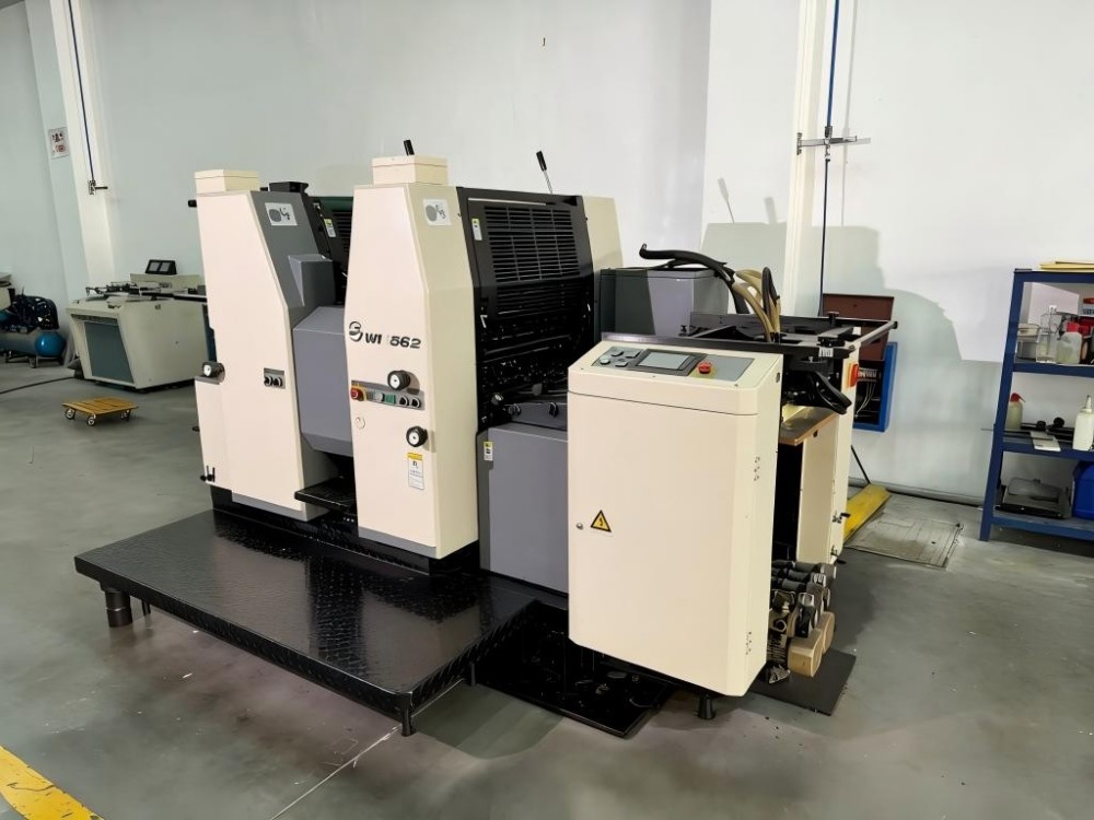 ນີ້ແມ່ນເຄື່ອງພິມກາວແບບສອງສີ A2 (ປ້າຍກຳກັບ) ທີ່ປ້ອນດ້ວຍແຜ່ນ. ມັນມາພ້ອມກັບໂຄງສ້າງທີ່ແຂງແລະທົນທານ. ມັນໃຊ້ຕົວປ້ອນ swing-arm ເພື່ອເອົາເຂົ້າໄປໃນເຈ້ຍ. ມັນຍ້າຍເຈ້ຍໄປຂ້າງໜ້າຢ່າງສະໝໍ່າສະເໝີ. ມືຈັບສະປີດສອງເທົ່າ ຢຸດເຈ້ຍຈາກການເລື່ອນ. ມັນເຮັດວຽກໄດ້ດີສໍາລັບການພິມຄວາມໄວສູງ. ມັນສາມາດພິມໄດ້ທັງເຈ້ຍບາງແລະຫນາ. ການໂຕ້ຕອບການຂຽນໂປລແກລມຫນ້າຈໍສໍາຜັດຊ່ວຍໃຫ້ຜູ້ໃຊ້ປ່ຽນການຕັ້ງຄ່າຢ່າງໄວວາ.
