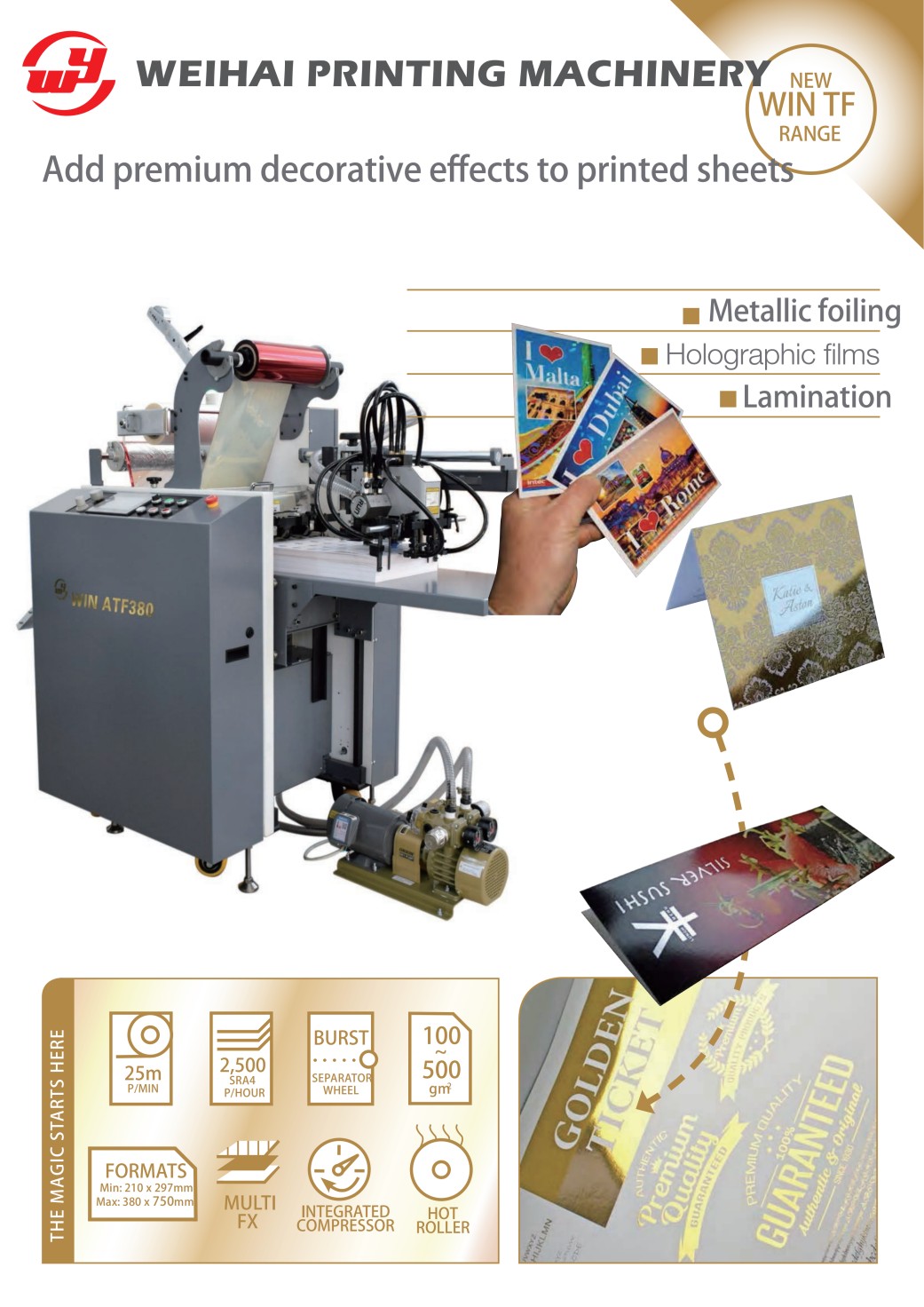 ຍີ່ຫໍ້ WIN ເປັນຜູ້ຜະລິດເຄື່ອງພິມດິຈິຕອລຈີນແບບມືອາຊີບແລະຜູ້ສະຫນອງເຄື່ອງ Laminating ແລະ Foiling ທີ່ເຊື່ອຖືໄດ້, ສະເຫນີຂາຍເຄື່ອງພິມດິຈິຕອນໂດຍກົງຈາກໂຮງງານດ້ວຍລາຄາໂຮງງານທີ່ເຫມາະສົມແລະການບໍລິການແບບເຕັມຮູບແບບ. ຖ້າຫາກວ່າທ່ານກໍາລັງຮ້ອງຂໍໃຫ້ວິທີການທີ່ຈະເລືອກເອົາເຄື່ອງສໍາເລັດຮູບຫຼັງຈາກກົດດັນປະສິດທິພາບສູງ, ຂອງພວກເຮົາ350mm Sheet-Fed Laminating and Foiling Machineແລະເຄື່ອງ Laminating-Free Platemaking ແລະ Foiling Machine ແມ່ນທາງເລືອກທີ່ດີທີ່ສຸດຂອງທ່ານ.