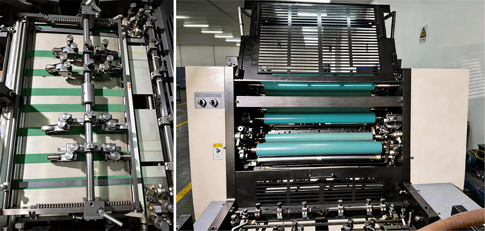 ຂະຫນາດໃຫຍ່ A3 Alcohol Dampening Single-Color Sheet-Fed Offset Printing Press, ຕິດຕັ້ງດ້ວຍລະບົບ dampening ເຫຼົ້າ, ຖືກອອກແບບມາເພື່ອໃຫ້ມີໂຄງສ້າງເຄື່ອງຈັກທີ່ມີນ້ໍາຫນັກ, ກົນໄກການໃຫ້ອາຫານກະດາດ swing-arm, ກົນໄກການຂົນສົ່ງກະດາດຢ່າງຕໍ່ເນື່ອງ, ແລະແຂ້ວ gripper double-spring, ເຊິ່ງເຮັດໃຫ້ຫນັງສືພິມທີ່ເຫມາະສົມສໍາລັບການພິມການຄ້າແລະການພິມຫຸ້ມຫໍ່. ມັນໃຊ້ຫນ້າຈໍສໍາຜັດທີ່ມີການໂຕ້ຕອບ intuitive ທີ່ງ່າຍຕໍ່ການໃຊ້ສໍາລັບຜູ້ປະຕິບັດການຕັ້ງຄ່າແລະຕົວກໍານົດການຂອງໂປແກມເຊັ່ນດຽວກັນກັບການລ້າງຄວາມຜິດພາດແລະເຫດການ.